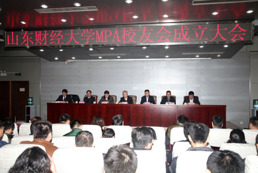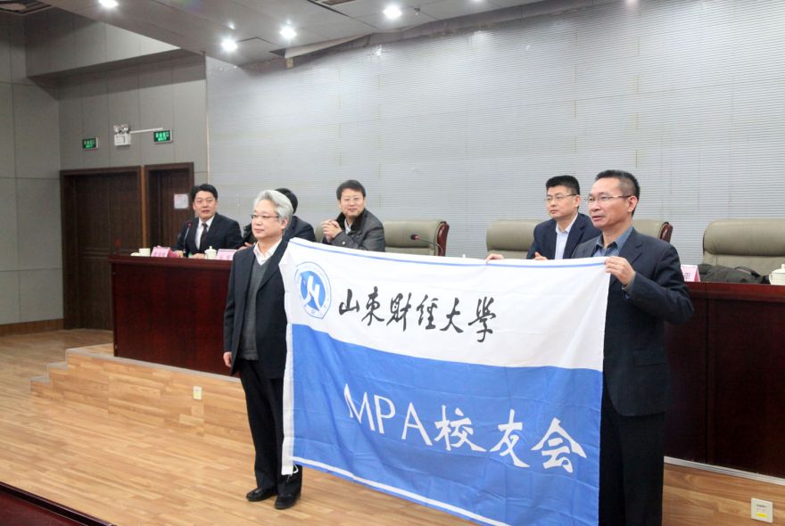 1月24日上午,山东财经大学MPA校友会成立大会在山东财经大学国际交流中心(天舜大厦)文华堂隆重举行,来自山东省内外的150多名校友代表参加大会。山东财经大学副校长、校友总会副会长胡文波出席大会并为MPA校友会授旗。校友工作办公室主任、校友总会秘书长耿金波,研究生院院长韩作生,财政税务学院院长、首任MPA教育中心主任岳军、东营校友会常务副会长兼常务副秘书长任忠跃、云南校友会代表张蕊等到会祝贺。已成立的山东财经大学省内各市级校友会、各省市校友会纷纷致贺电、贺信。会议由李洪伟主持。