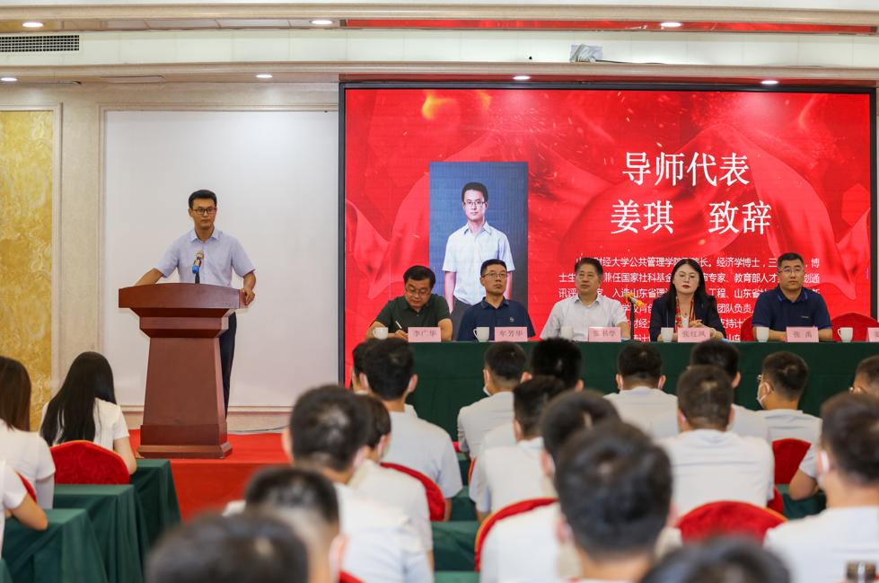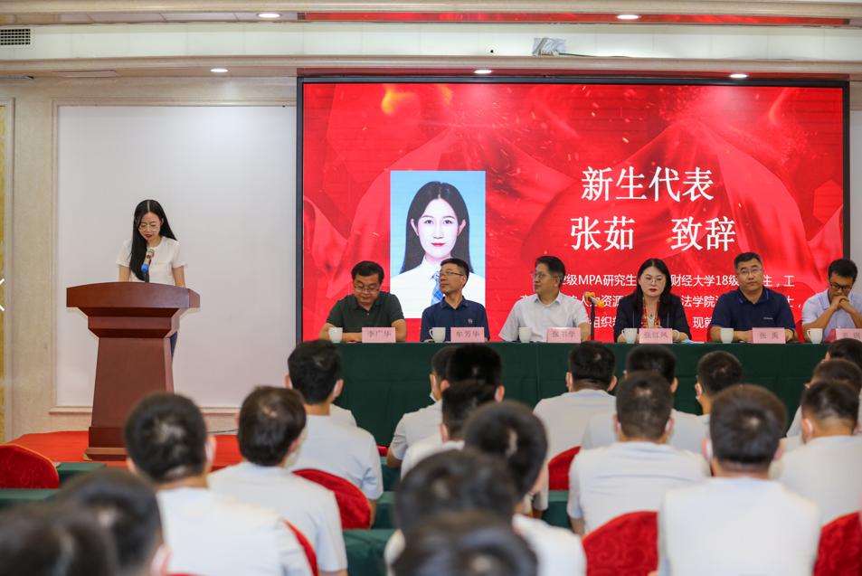 开学典礼上,山东财经大学副校长张书学,公共管理与法学学部部长、MPA中心主任张红凤,导师代表公共管理学院副院长姜琪,新生代表张茹分别进行了致辞和发言。