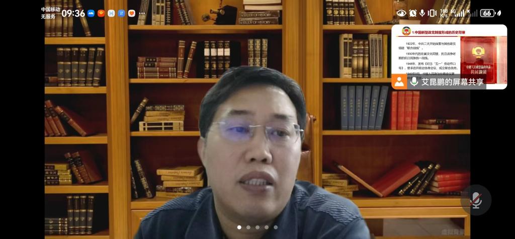 (通讯员:张禹、孙开红)11月5日上午,MPA中心名家讲堂第15期成功举行。河南师范大学政治与公共管理学院艾昆鹏副教授应邀做客MPA“政治学”课堂,以腾讯会议的形式,带来了一场题为“中国新型政党制度的理论特色与实践优势”的精彩报告。本次报告是MPA核心课程“政治学”的专家讲学环节,得到了MPA中心研究生课堂嘉宾讲学计划的支持,本次报告由“政治学”主讲教师孙开红老师主持,MPA中心副主任张禹, 2023级2班(集中班)全体学员在教室集中聆听了报告,新疆财经大学部分师生在线参加了此次活动。