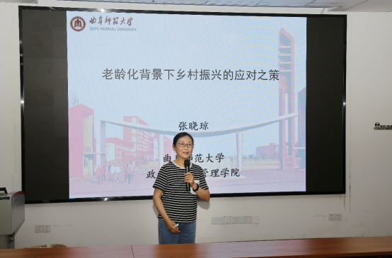张晓琼教授首先从老龄化问题的提出入手,说明了乡村振兴背景下农村养老产生的原因。随后,张教授向大家说明了当下农村养老存在的农村养老资源匮乏、养老公共服务设施和资源配置不足、养老服务需求持续增长、养老服务人力资源极度匮乏等问题。最后,张教授结合实际,根据淄博市创新农村养老服务的主要做法及经验向大家讲述了互助养老做法的好处及成效。引导同学在老龄化与乡村振兴方面深入思考。