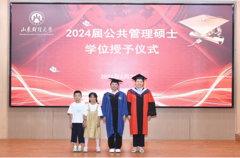 学位授予仪式上,张红霞、张红凤、李森、曲衍波为参加毕业典礼仪式的103名毕业生授予了公共管理硕士学位。
