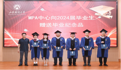 MPA副主任牟芳华为2024届毕业生赠送了“财大水杯”,祝愿师生情源远流长,幸福一辈子!