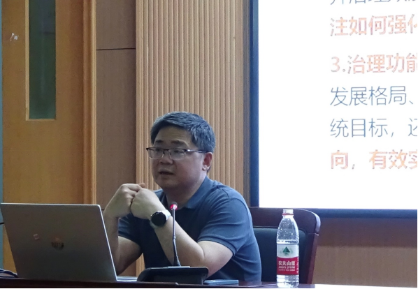章文光教授以乡村治理“自治、法治、德治”的渊源为切入点,理论联系实际,围绕“三治融合”是什么、怎么来、做法经验以及未来趋势四个方面,深入浅出地阐述讲解了乡村治理的历史演进与发展脉络。他指出,党的十九大报告明确提出“加强农村基层基础工作,健全自治、法治、德治相结合的乡村治理体系”,党的二十大报告要求,“在社会基层坚持和发展新时代‘枫桥经验’”(坚持自治、法治、德治“三治融合”是新时代“枫桥经验”的主要路径)。“三治融合”中党组织领导是核心,村民自治是主体,法治、德治是“两翼”,在推动现代化治理体系形成中发挥着重要作用,有助于提升现代化基层治理能力。农村“半熟人社会”的状态、内循环为主的新发展格局、从全面建成小康到全面推进乡村振兴是乡村需要“三治融合”治理的主要原因。他强调,乡村治理体系在在国家历史上是一个动态调整的过程,简要回顾了新中国成立前、社会主义革命和建设时期、人民公社时期等五个阶段国家治理体系的发展历程。随后,章文光聚焦村规民约、乡村事务法治建设、发挥“德治”功能以及借助现代化治理工具等四类典型经验做法,分享了“三治融合”在不同地区、不同领域的具体案例,全方位、多维度地讲解了基层治理问题化解的实践经验。最后,章文光教授简要分析了“三治融合”的未来趋势。