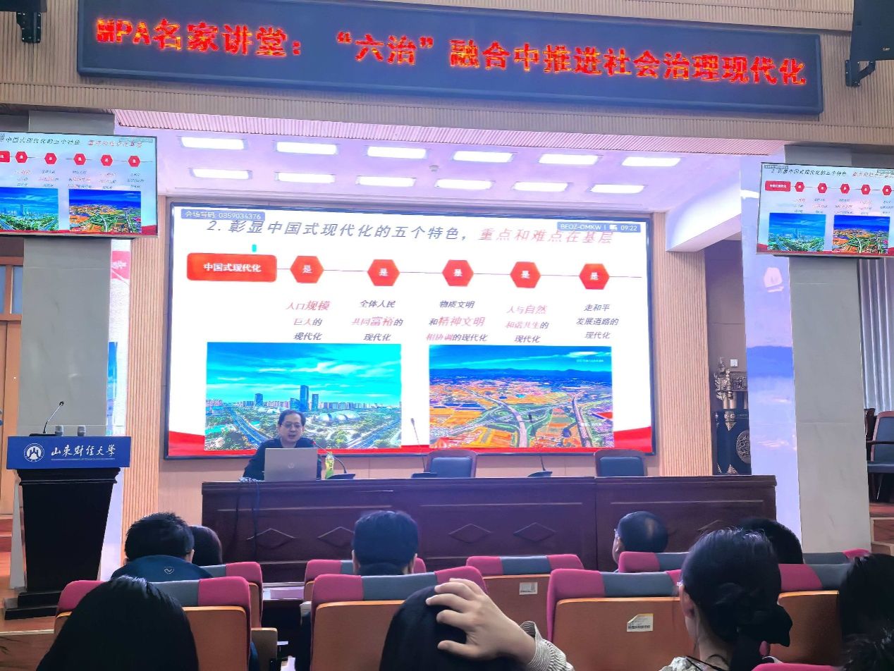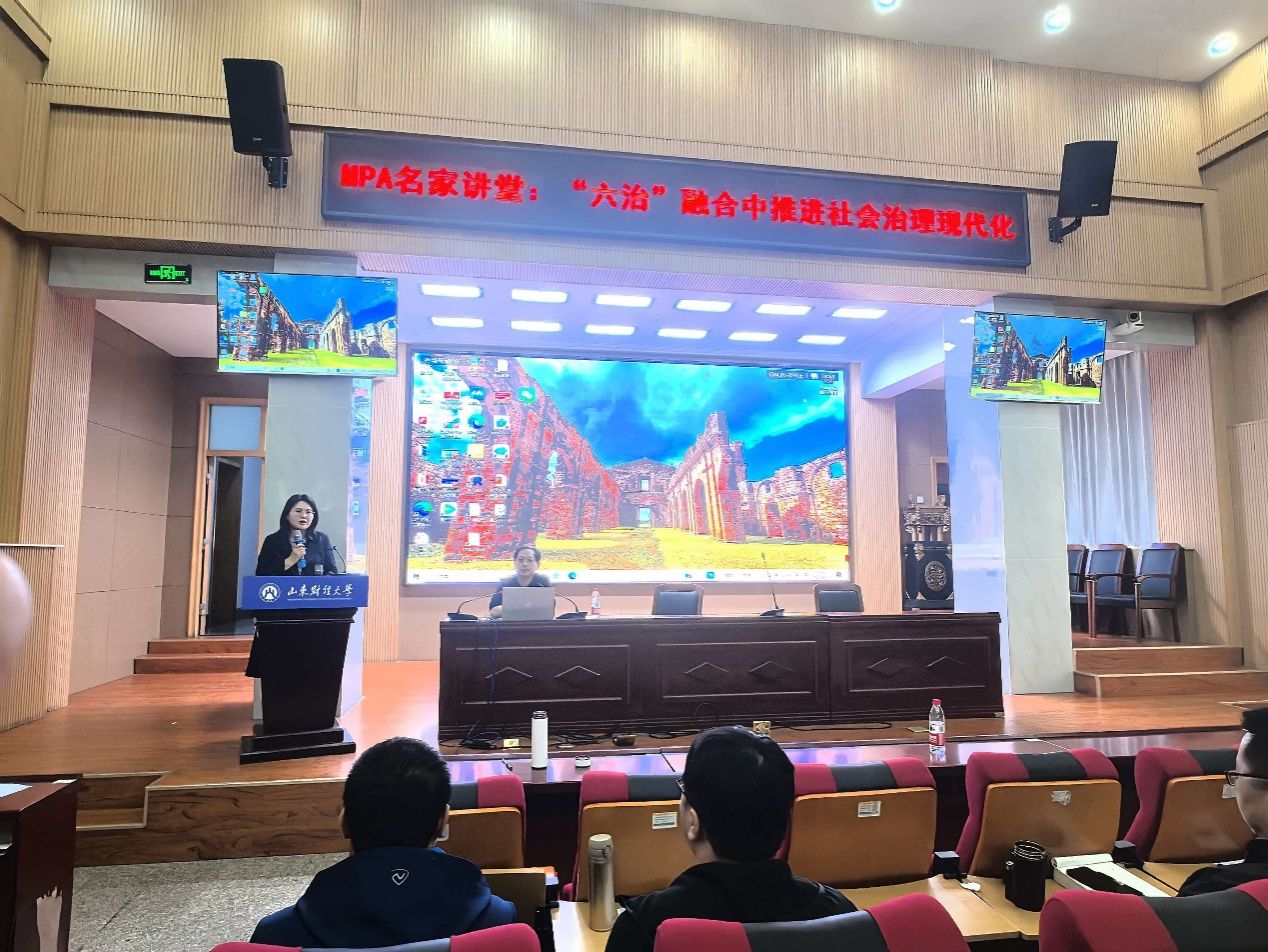 (通讯员:吴芊里)4月17日,MPA中心举办第43期名家讲堂之公共管理前沿专题讲座。本次讲堂邀请山东社会科学院政策研究室主任冯锋作以“‘六治’融合中推进社会治理现代化”为题的学术报告,部分教师以及2025级全体MPA研究生聆听了本次讲座。