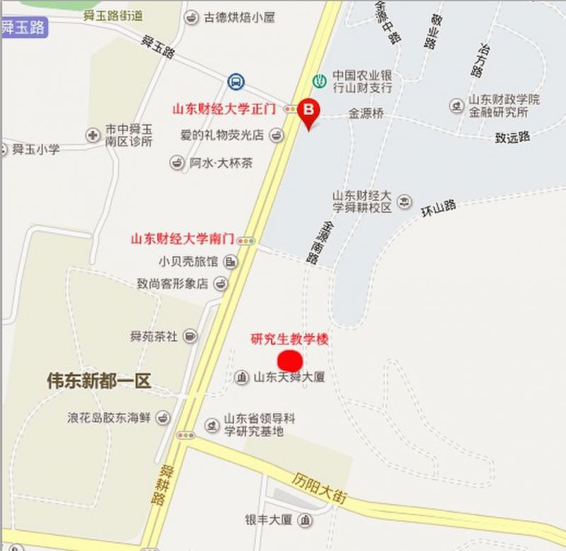 山东财经大学舜耕校区(济南市舜耕路40号)研究生教学楼104教室。如图
