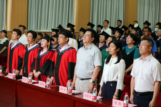 毕业典礼在庄严肃穆的国歌声中拉开序幕。