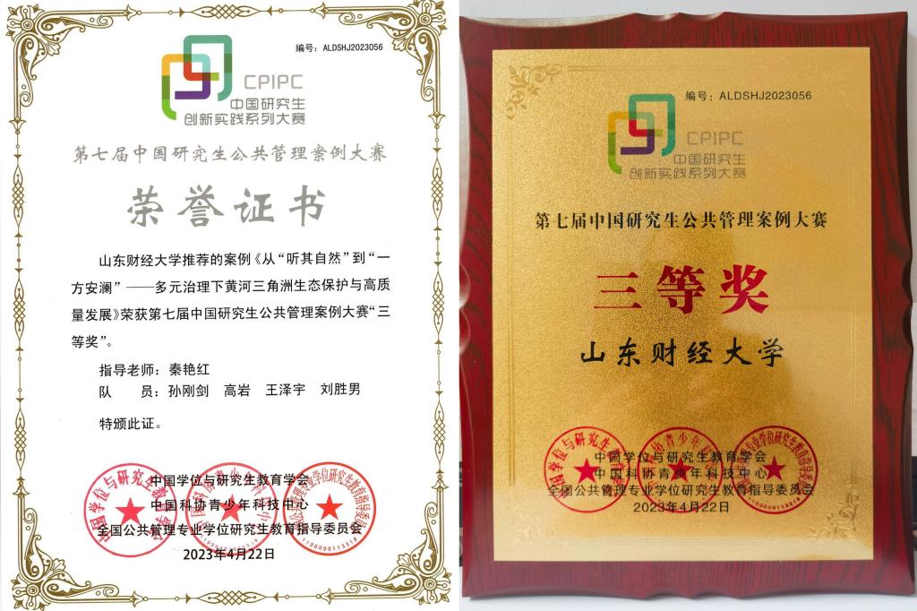 本届大赛共吸引来自全国197所院校的1942支队伍报名,最终收到188所院校提交的1492篇有效案例。我校MPA中心2022级公共管理硕士(MPA)“大河之洲”队(指导老师:秦艳红;参赛学生:孙刚剑、高岩、王泽宇、刘胜男)撰写的案例“从“听其自然 ”到“一方安澜 ”——多元治理下黄河三角洲生态保护与高质量发展”晋级全国100强并荣获三等奖。