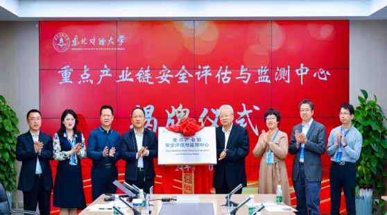 会后,张红凤教授与各位专家一同参与了“重点产业链安全评估与监测中心”的揭牌仪式。
