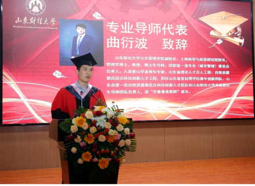 导师代表、公共管理学院副院长曲衍波教授寄语毕业生:在新的人生旅途中,同学们要始终保持诚信、正直和勤奋的品质,时刻保持清醒的头脑和坚定的信念,关注社会发展,关心人民群众的需求,不断拓展自己的视野和能力,用专业知识和技能为社会做出积极的贡献,让社会更加美好。