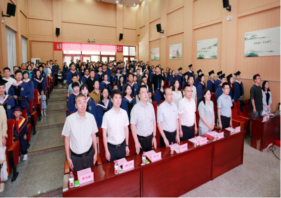 最后,毕业典礼及学位授予仪式后,出席仪式的各位领导、老师、同学们在报告厅前合影留念。