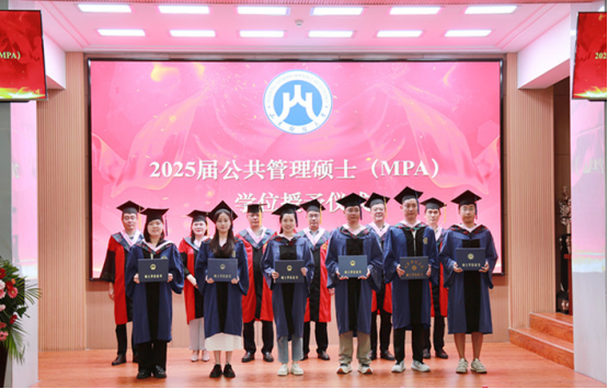 在热烈的掌声中,党委副书记张培国代表学校向顺利毕业的128位MPA学员表达了祝贺,为他们即将踏上新的征程送上了良好祝愿,给大家提出了三点期望:一是要以“系统思维”破解发展的难题,二是要以“泥土情怀”铸就政策的温度,三是要以“韧性智慧”应对时代的变局。勉励大家树鲲鹏之志,以胸怀家国的赤子之心砥砺前行,以不负韶华的奋进姿态勇立潮头,做时代先锋、国之栋梁!
