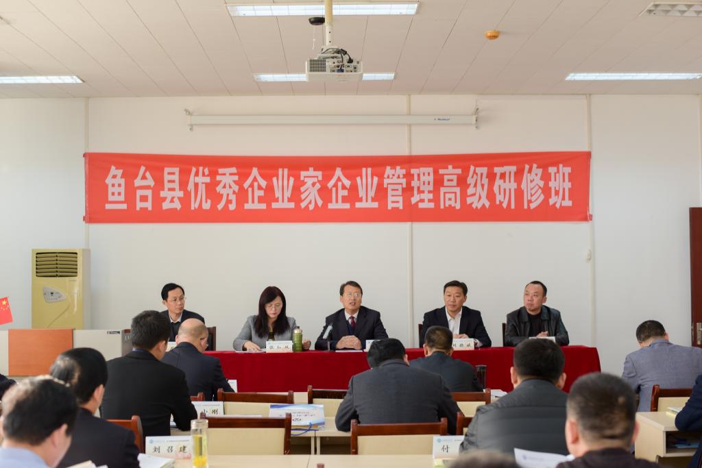(通讯员 张禹)11月27日,鱼台县优秀企业家企业管理高级研修班开班典礼在我院第二会议室隆重举行。学校副校长韩作生、鱼台县委常委、组织部部长刘德斌、公共管理学院院长张红凤、鱼台县经信局党委书记、局长郭良锋、鱼台县委组织部副部长徐立彪等出席典礼仪式并讲话。鱼台县从全县规模以上企业中选拔了30余位优秀企业家参加了此次培训班。