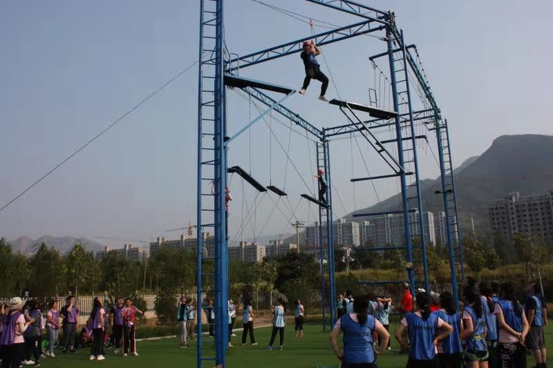 随后,2019级MPA全体新生激情满怀的踏上了素质拓展训练的征程。全体学员分组形成了六支队伍,每支队伍选拔出了队长和队秘、设计了队旗、确定了队训、编排了队歌,充分调动起团队协作和快速反应能力。在素质拓展教练的指导下,主要进行了“高空平衡板”、“高空断桥”、“高空抓杠”、“毕业墙”“团队七巧板”等一系列项目。每一项拓展项目结束后,教练都组织大家分享心得体会交流,分析任务完成过程中的得与失,总结成功经验和失败教训。整个素质拓展训练结束后,学员纷纷表示,通过素质拓展训练,大家相互关心、激励、包容,增强了团队的凝聚力,加深了学员之间的感情,增进了集体归属感。